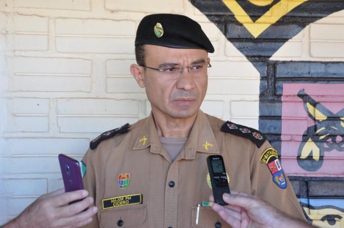 O comandante Major Cícero falou em entrevista coletiva sobre os números da ação que contou com pelo menos 50 policiais.