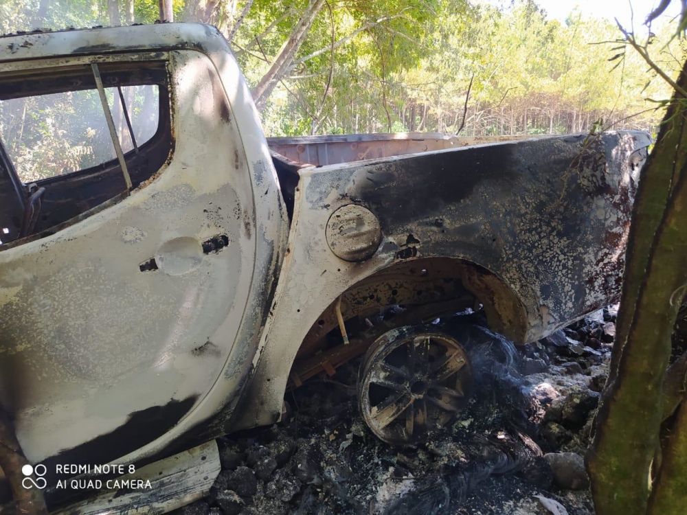 Segundo as informações, dois disparos de arma de fogo foram ouvidos por populares e na sequência no local foi encontrada uma camionete com dois corpos carbonizados ao lado do veículo.