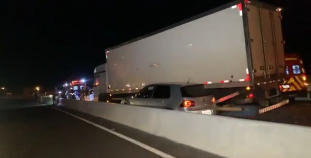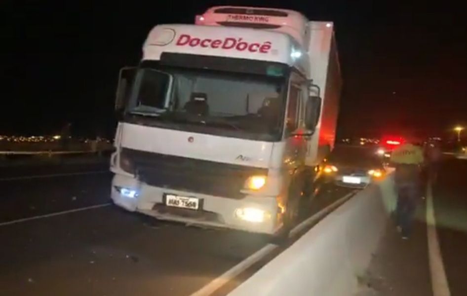 Segundo informações um GM/Corsa e uma Fiat/Strada teriam colidido momentos antes, sendo que na tentativa de desviar do acidente, o caminhão acabou prensando um veículo VW/Golf contra a mureta que divide a rodovia. O acidente resultou apenas em ferimentos leves nos ocupantes dos carros, o condutor do caminhão não se feriu.