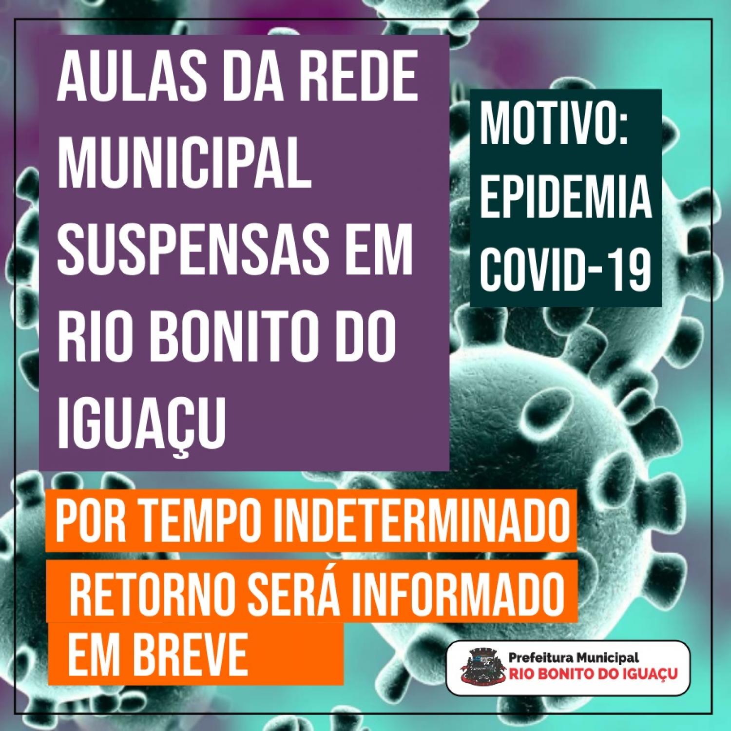 A partir desta sexta-feira, 20, as aulas na Rede Municipal de Ensino (Escolas Municipais e CMEIS) estão suspensas em Rio Bonito do Iguaçu.