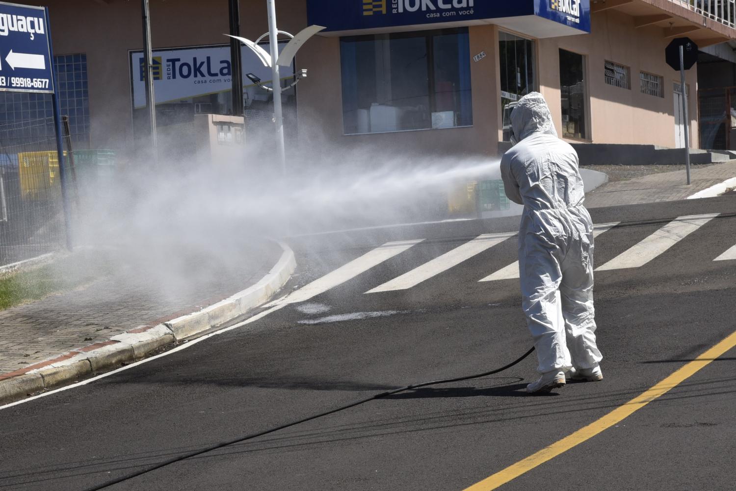 Estão sendo desinfetadas as frentes dos supermercados, farmácias, unidades de saúde (cidade e comunidade do Urutu), a Avenida Iguaçu, entradas de todos os bairros, escolas, clubes e associações, espaços de fábricas e indústrias, rua de acesso ao ginásio, espaço da capela mortuária e cemitério, praças e outros locais de maior circulação de pessoas.