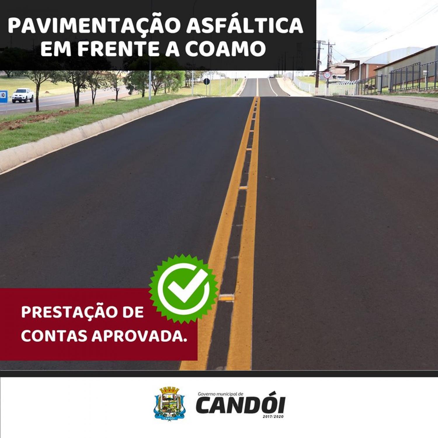 A obra de asfaltamento executada em frente à Coamo, no município do Candói, teve um investimento de 01 milhão de reais e a obra foi fiscalizada e aprovada na última sexta-feira (3), pela Caixa Econômica Federal.