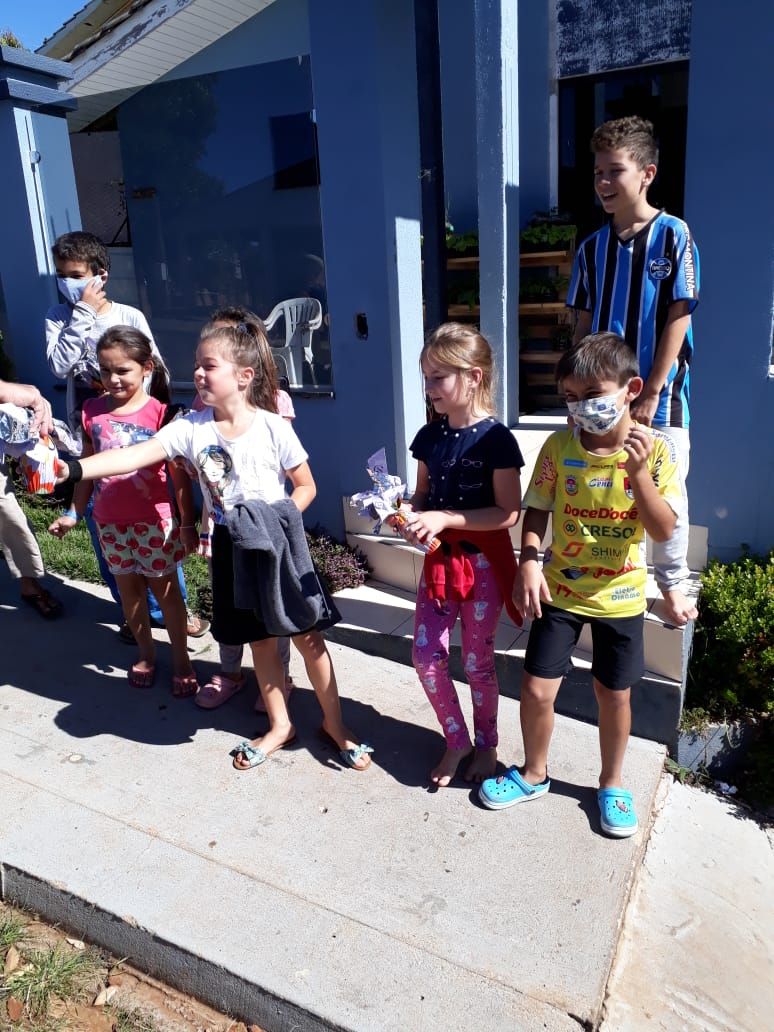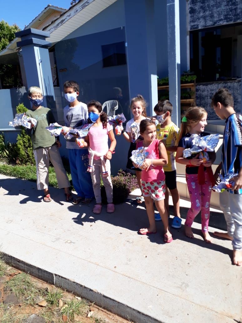 A entrega dos ovos foi realizada pela viatura da polícia de forma individualizada, com a prevenção ao contágio do Corona Vírus, para que não ocorresse aglomeração de pessoas.