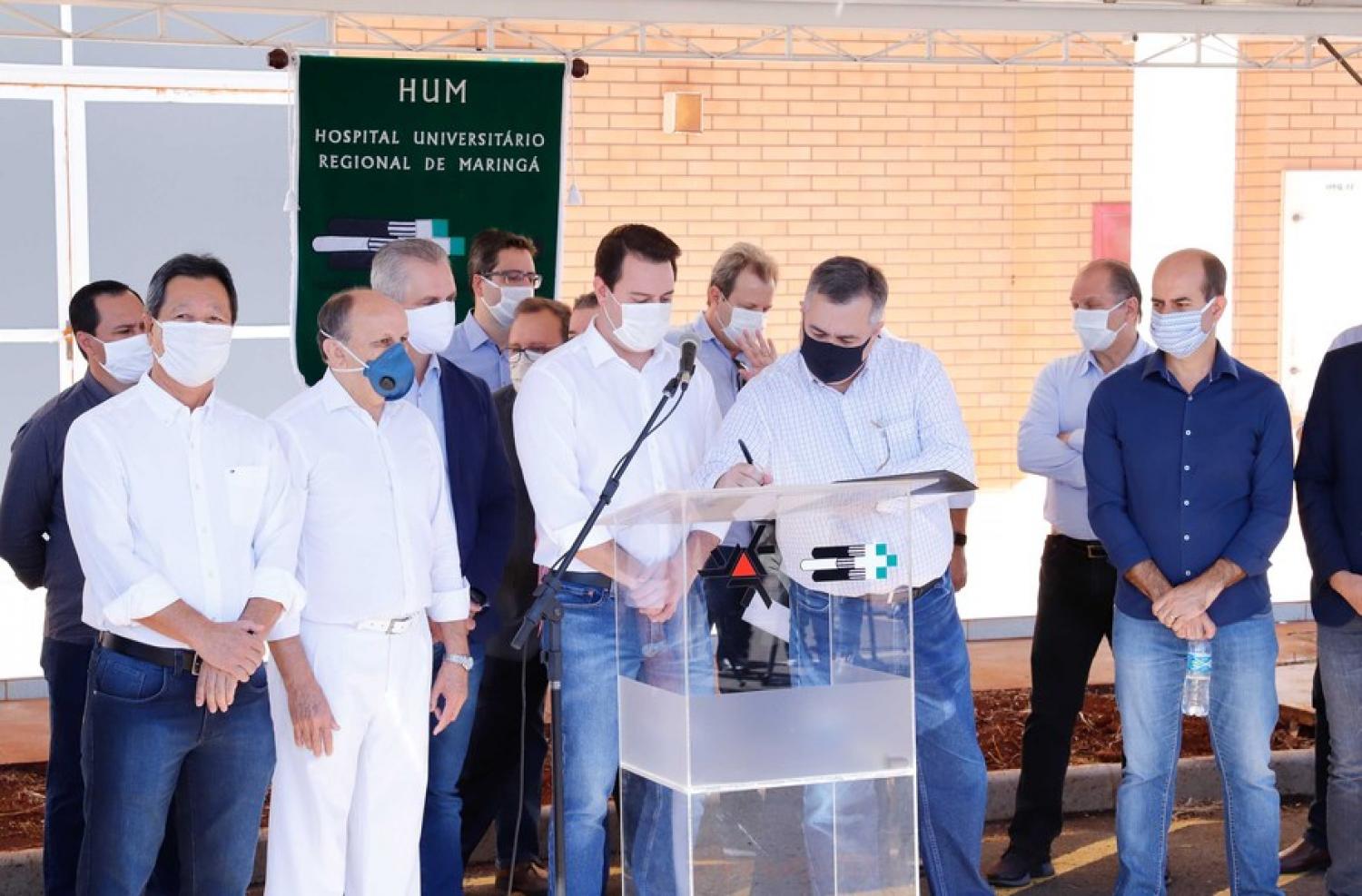 Além de Ratinho Junior, participaram do evento no Hospital Universitário de Maringá o secretário da Saúde, Beto Preto, o chefe da Casa Civil, Guto Silva, o superintendente de Ciência, Tecnologia e Ensino Superior, Aldo Bona, o superintendente de Esportes, Hélio Wirbiski, além dos deputados estaduais Evandro Araújo, Soldado Adriano José, Homero Marchese e Dr. Batista.