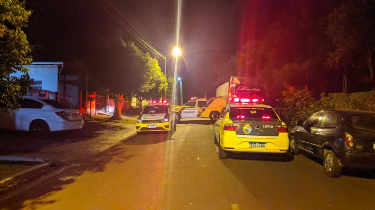 Um Homicídio registrado na noite deste domingo (26) na Rua Sapucaia esquina com a Aracaju no bairro Pinheirão, em Francisco Beltrão.