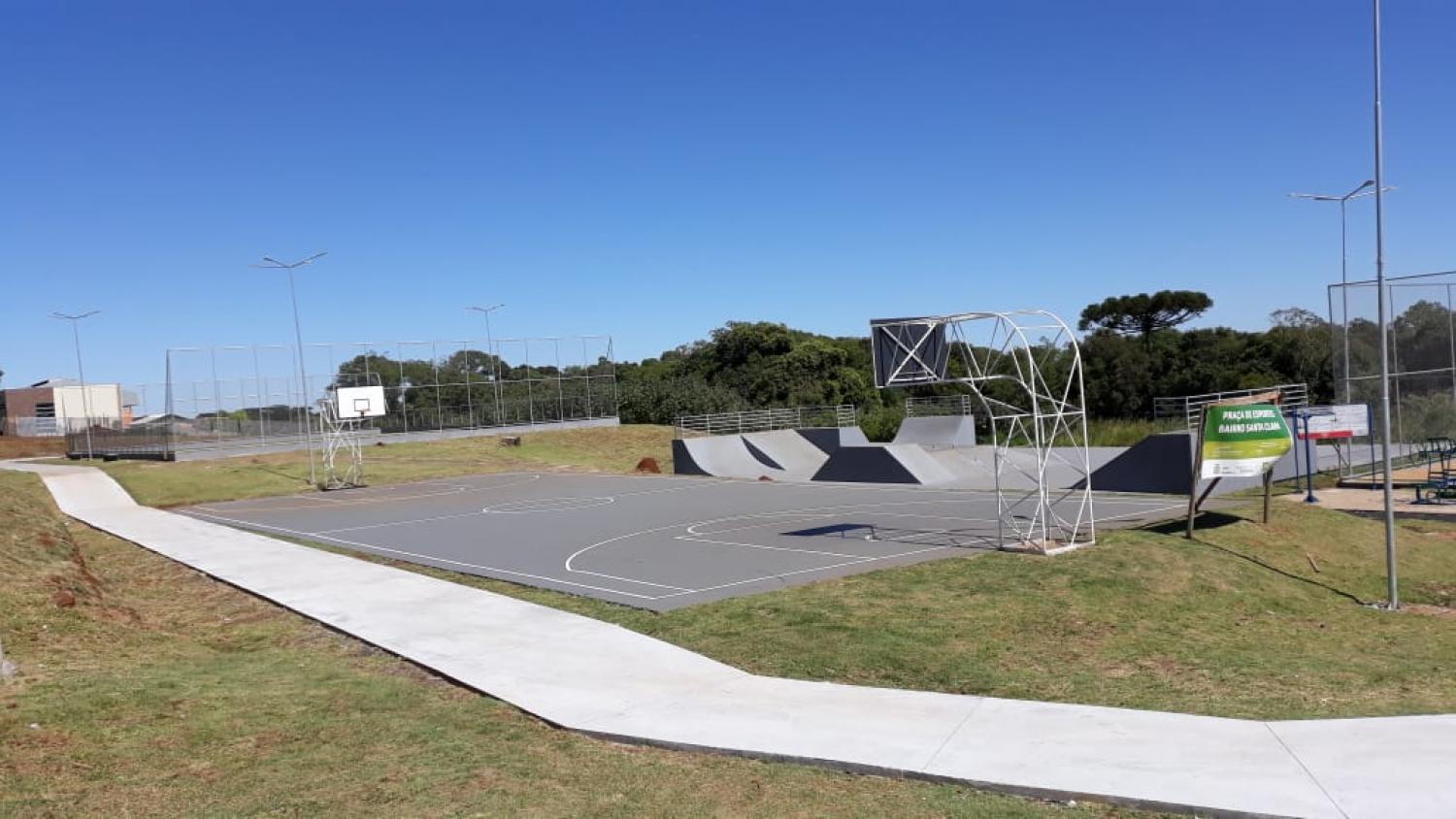 Foi concluída a reforma e ampliação da praça esportiva e área de lazer no bairro Santa Clara. Ao todo, foram investidos R$ 402 mil, sendo R$ 243 mil repasse do Ministério do Esporte, emenda parlamentar do deputado federal Aliel Machado e R$ 159 mil, contrapartida do município.