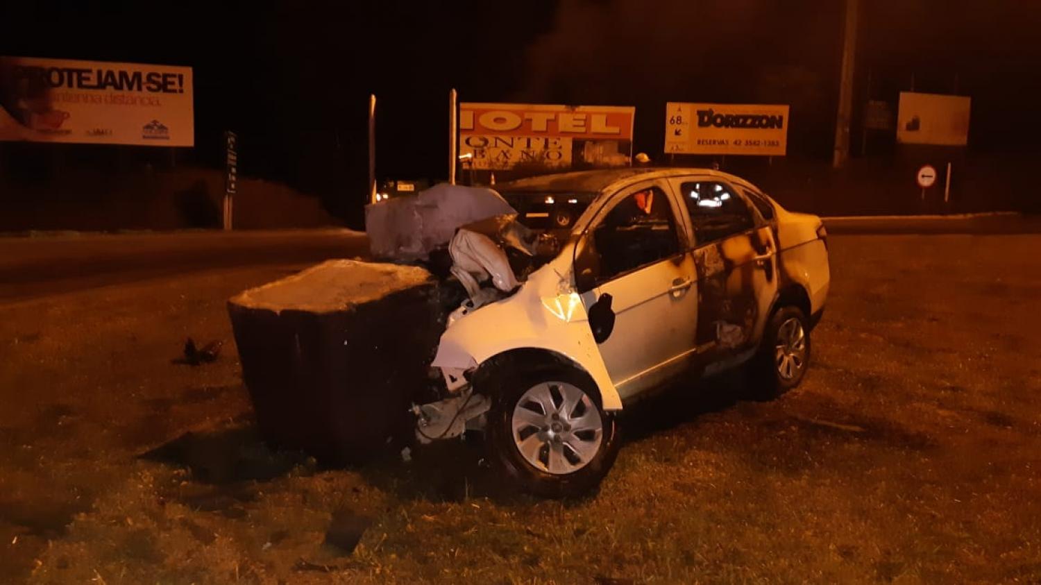 Conforme a equipe PRF que atendeu o acidente, o automóvel trafegava no sentido Imbituva-Irati e no entroncamento das BRs 153 e 277, na entrada de Irati, rampou uma lombada, seguiu em linha reta, passando pelo meio da rotatória e bateu na pedra que há na rotatória.