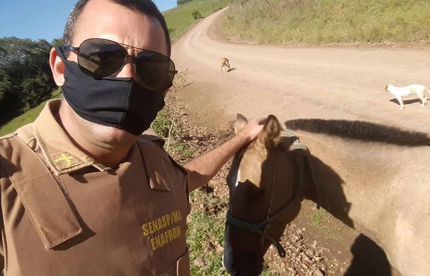 As equipes continuaram as rondas no intuito de localizar o proprietário do animal, que foi identificado e informou que no dia 01/05, por volta das 11h, sua égua havia sido furtada das proximidades de sua residência, apresentado a fotografia do animal, o mesmo reconheceu sendo de sua propriedade.