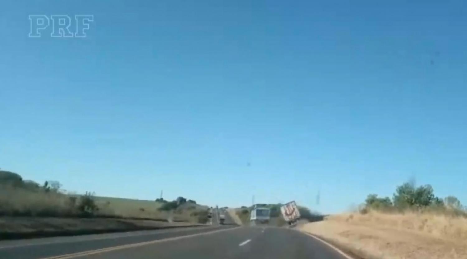 Logo à frente, após conseguir executar a ultrapassagem, o caminhoneiro que dirigia a carreta bitrem fechou o outro veículo, que primeiro saiu da pista e, na sequência, tombou sobre o asfalto.
