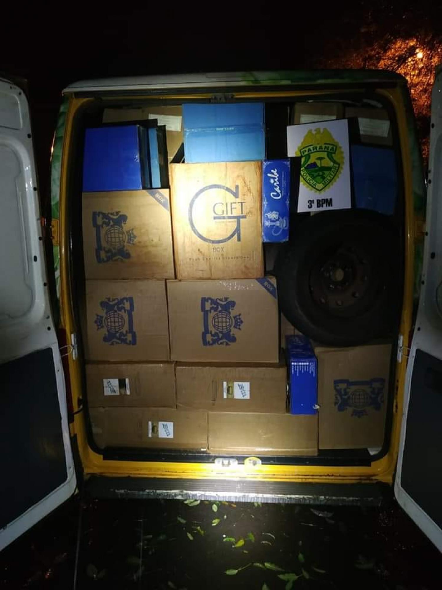 A ação ocorreu na noite desta terça-feira (12/05), por volta das 19h15min, às margens da PR-280, onde aos fundos de um celeiro foi visualizado o veículo Fiat/Ducato, placas de Cascavel-PR, e constatado estar carregado com cigarro contrabandeado do Paraguai.