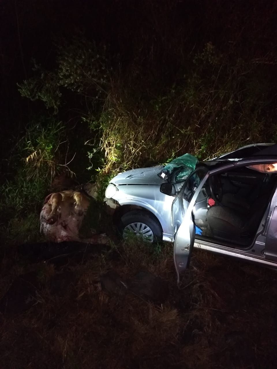 O animal teria invadido a pista causando o acidente. Um casal de Bela Vista da Caroba estava no veículo e a passageira de 35 anos sofreu ferimentos moderados. O cavalo morreu no local do acidente.