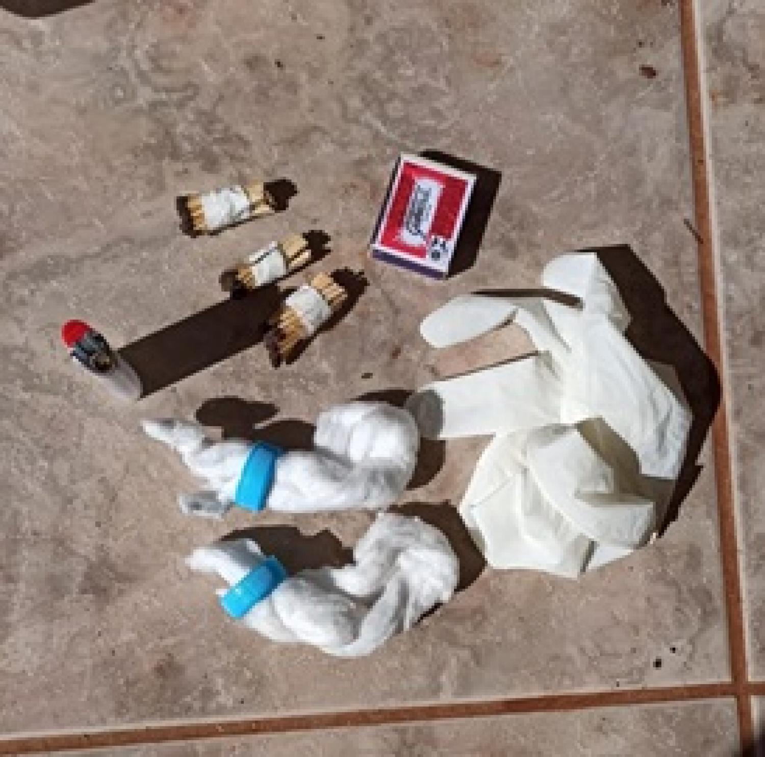 No local foi encontrado material de combustão (Coquetel Molotov), uma bomba artesanal e um machado usado possivelmente para quebrar a janela por onde foi arremessada a bomba.