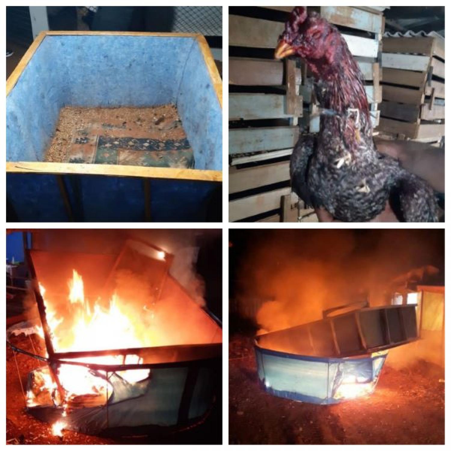 A Polícia Ambiental foi informada e aplicou as devidas notificações ao Proprietário da residência. O local onde acontecia a rinha (ringue) foi queimado.