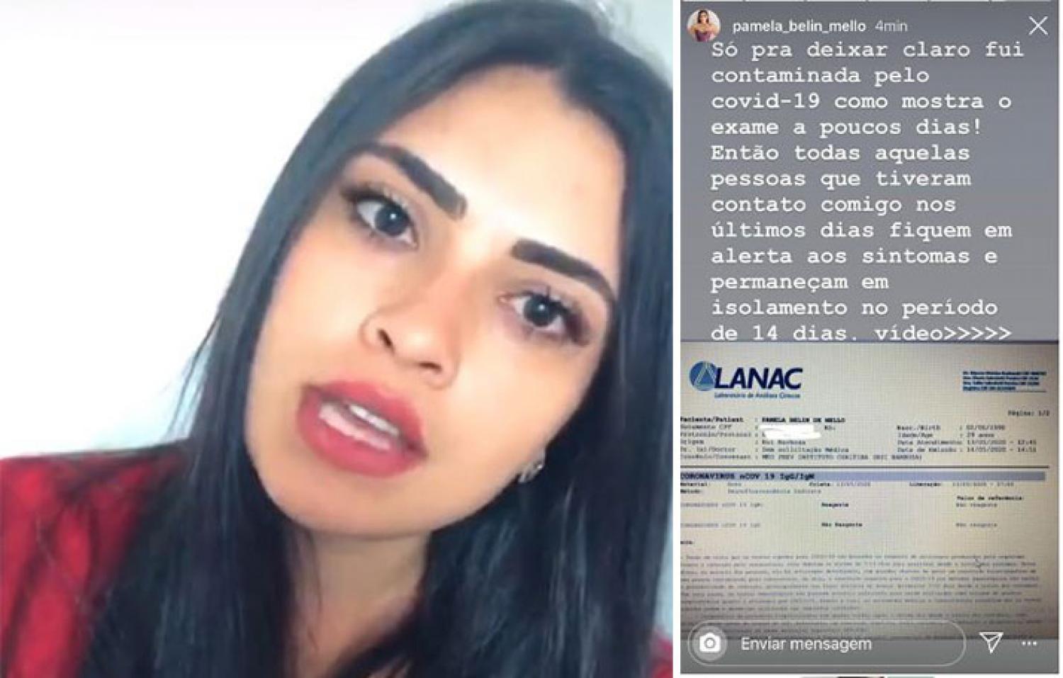 Pamela também gravou um vídeo dizendo que esteve em Curitiba visitando os familiares e que permaneceu por 45 dias em Prudentópolis, onde teria sido infectada. A jovem disse que ficou surpresa e que não esperava que o teste fosse positivo e que vai refazer o exame.