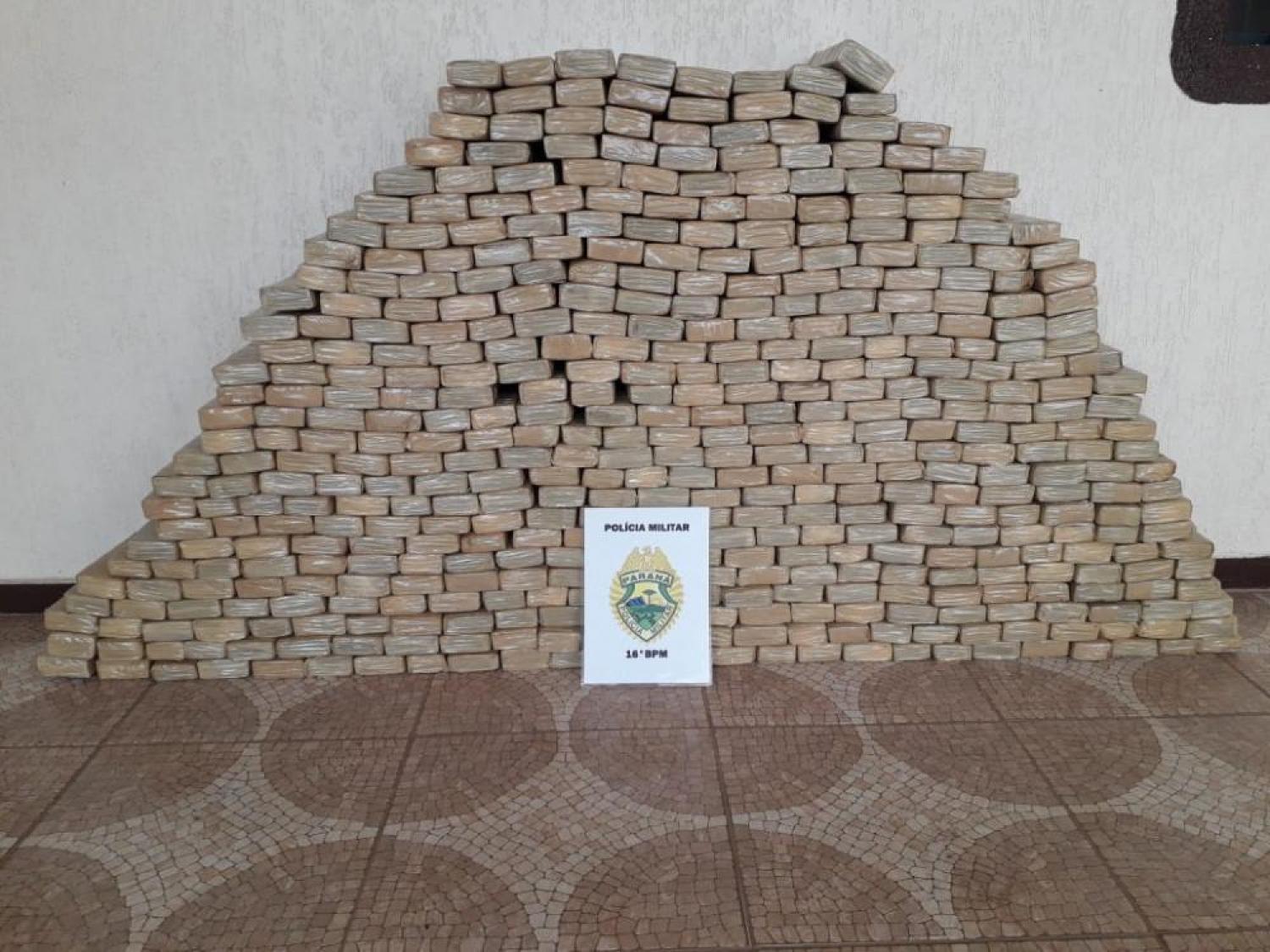 No interior do veículo foram localizados 462 (quatrocentos e sessenta e dois) tabletes os quais pesaram 320 Kg (trezentos e vinte quilos). Diante dos fatos o condutor e o veículo foram encaminhados para o Pelotão do Pinhão para os procedimentos cabíveis.