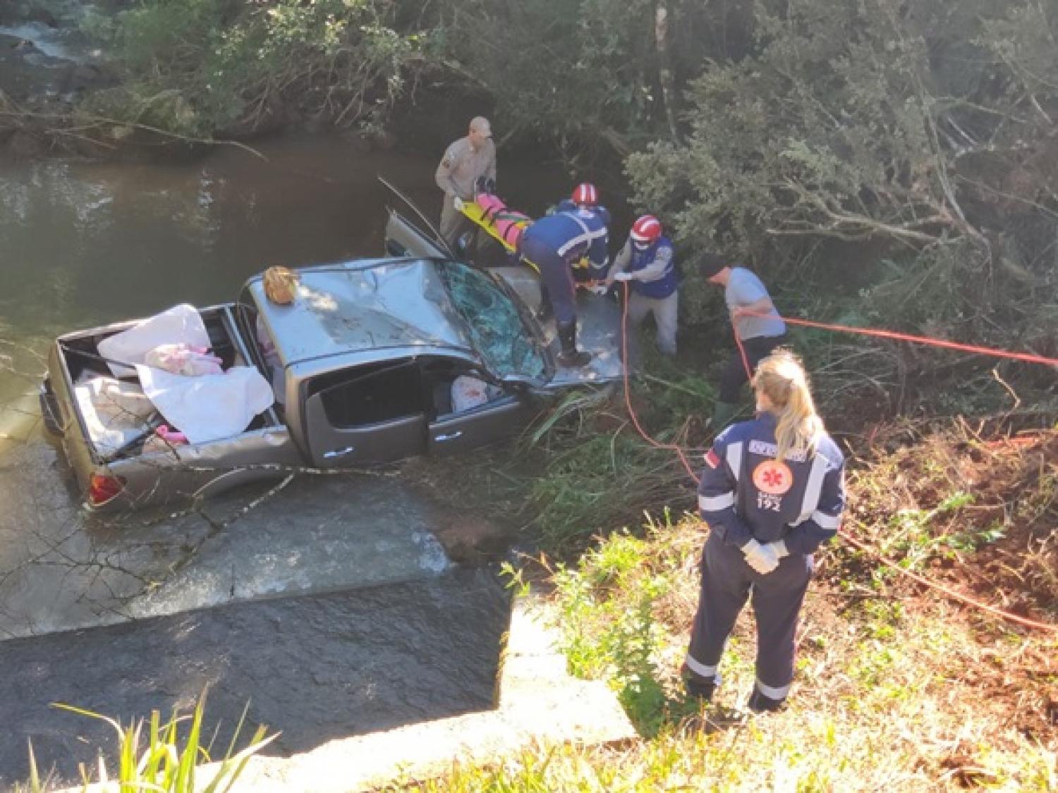 A mulher de 46 anos ficou presa nas ferragens, sofreu ferimentos moderados e foi retirada pelas equipes do Corpo de Bombeiros e Samu. Devido o local ser de difícil acesso, as equipes de socorro utilizaram cordas para resgatar a vítima do local. Em seguida ela foi removida ao hospital em Francisco Beltrão.