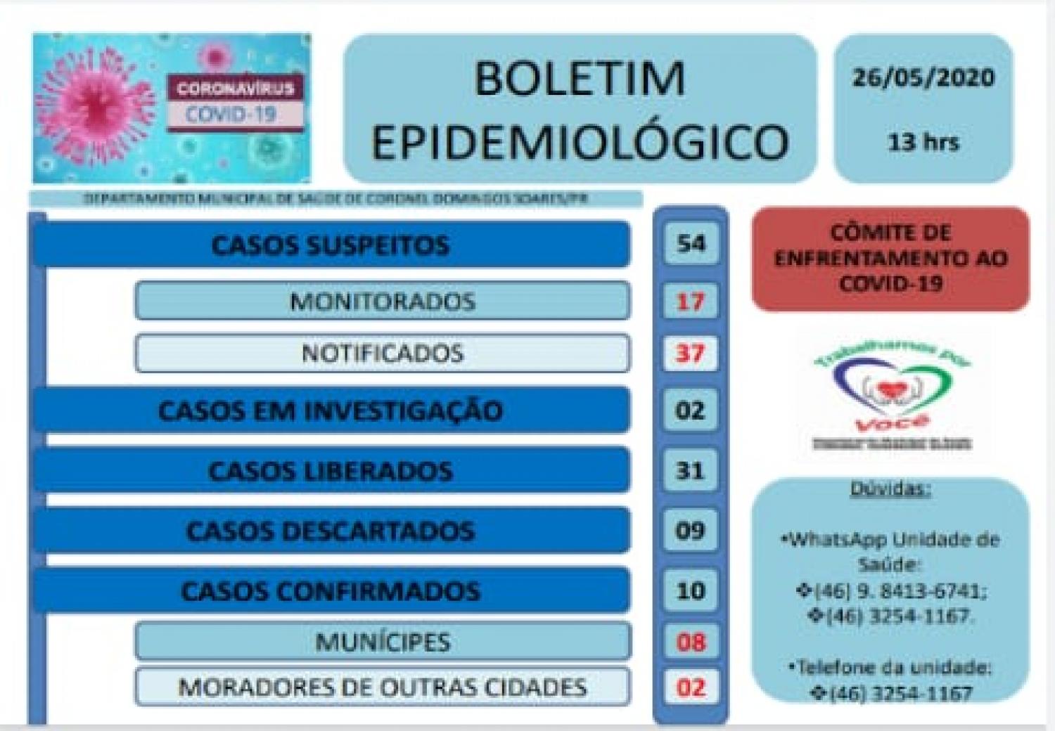 Com os casos confirmados nesta terça feira, dia 26, o município possui agora um total de 10 casos confirmados em dois dias.