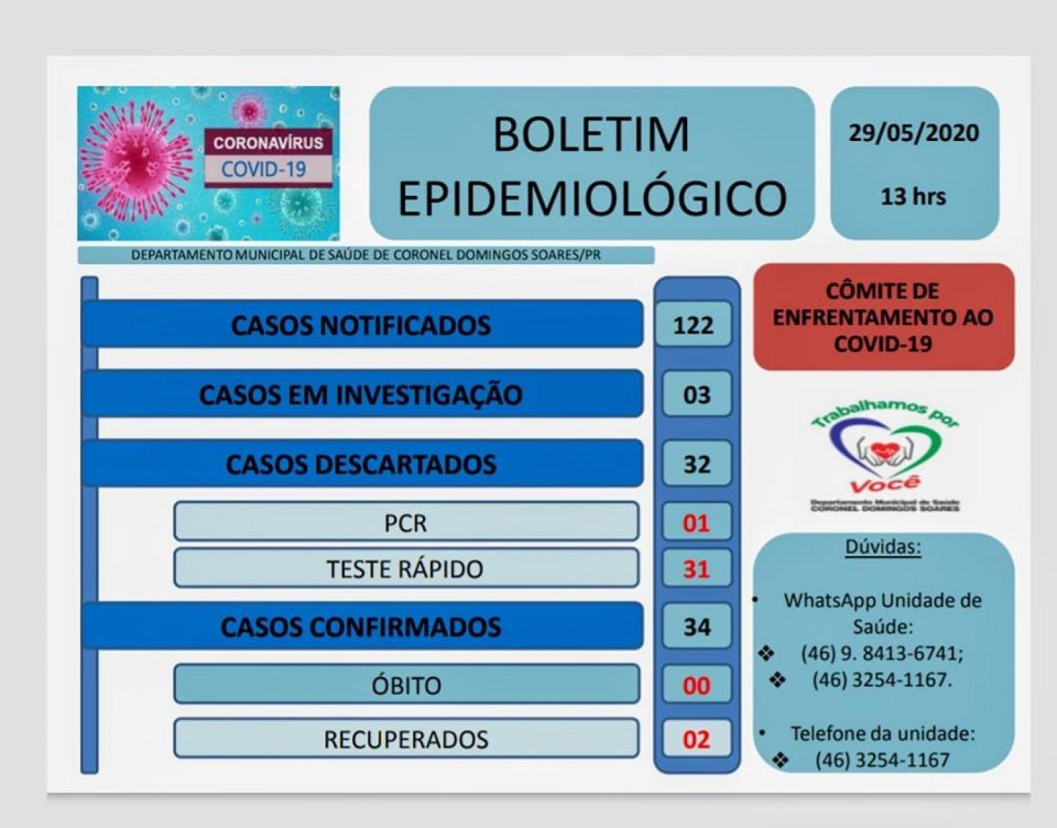 Os dados indicam que os casos confirmados já não são apenas de funcionários da empresa que está executando as obras de uma PCH-Pequena Central Hidrelétrica no município. Foi constatado que outras pessoas do município positivaram, oque indica que já está havendo uma transmissão comunitária em Coronel Domingos Soares.