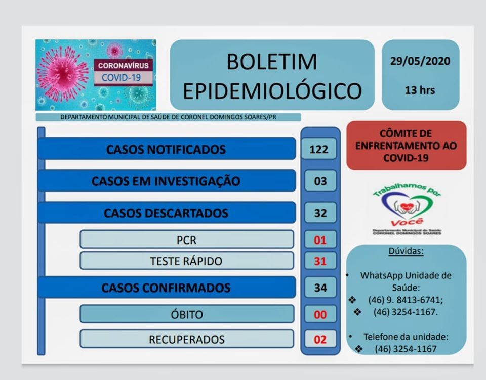 Em uma nova atualização dos casos de coronavirus no município de Coronel Domingos Soares foi registrado novo aumento de exames que deram positivo.