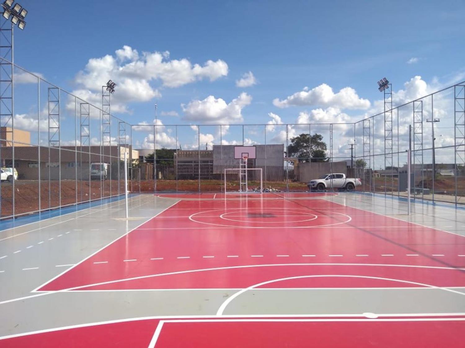 O espaço com alambrado e iluminação de led foi construído próximo a Câmara de Vereadores. O local poderá ser utilizado para a prática de várias modalidades coletivas como basquete, futsal, handebol e futsal.