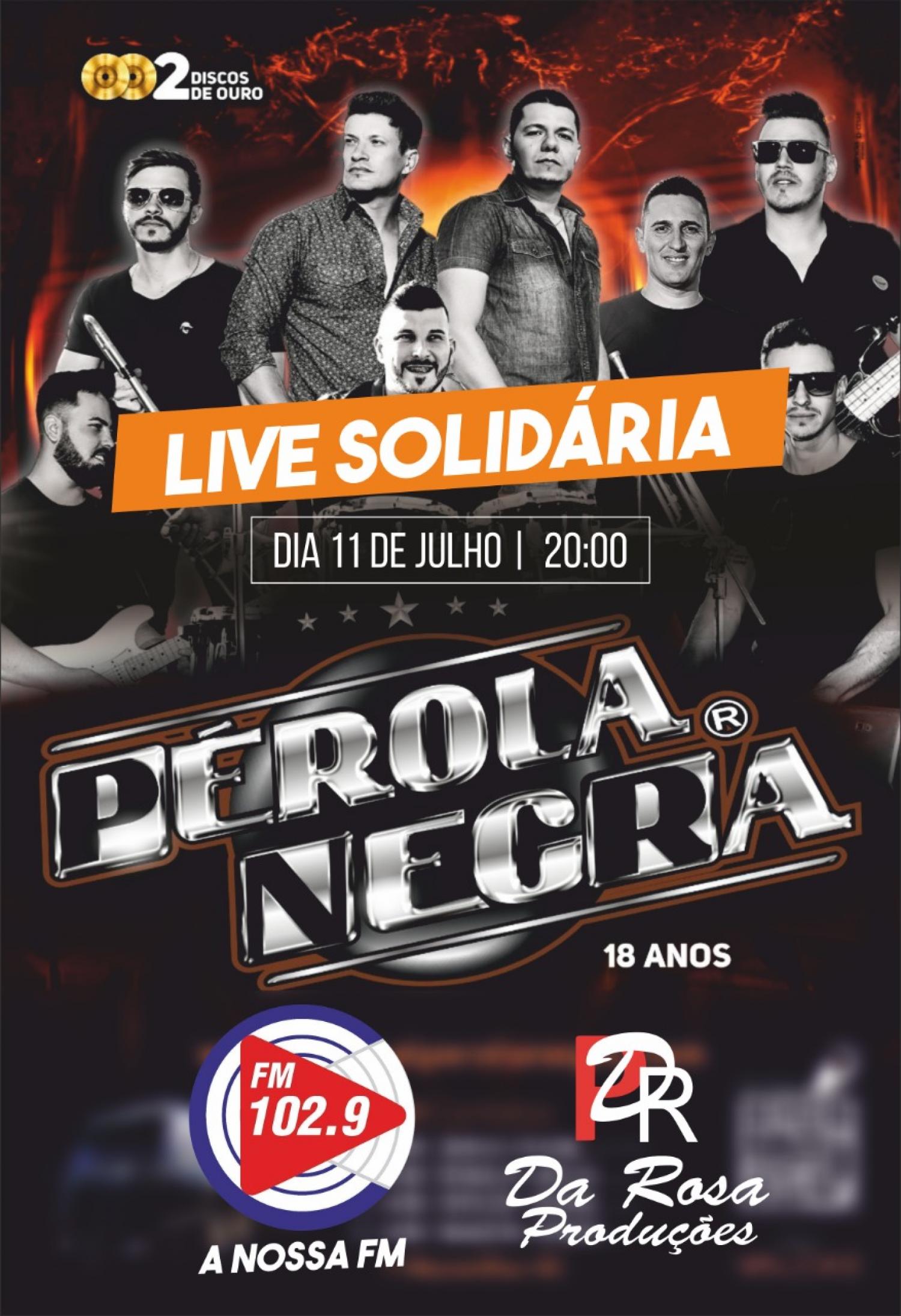 Vem aí uma super live solidária. A Nossa FM 102.9 em uma grande parceria com Da Rosa Produções e Banda Pérola Negra trarão até você uma super live solidária no próximo dia 11 de julho a partir das 20 horas. Você não pode perder