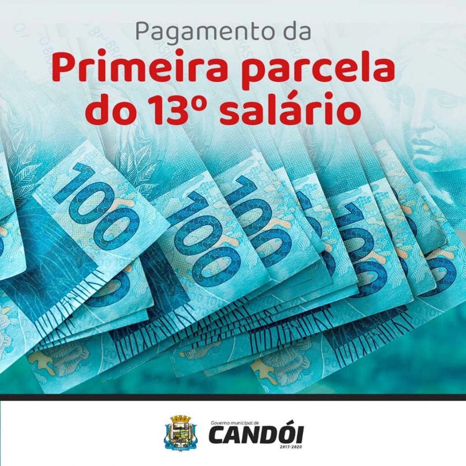 A Prefeitura de Candói realizará hoje quarta-feira (10) o pagamento da primeira parcela do 13º salário dos servidores públicos. A segunda parcela deverá ser paga até o dia 20 de dezembro. Ao todo cerca de 787 mil reais serão liberados aos servidores públicos do município.