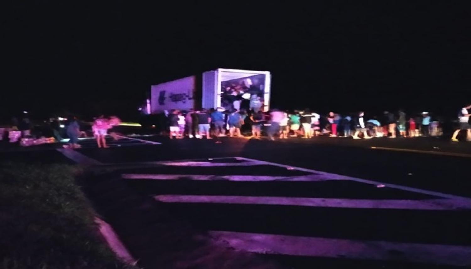 Em poucos minutos dezenas de indígenas cercaram o caminhão, arrombaram a porta de carga, cortaram a parte lateral da carreta e saquearam a carga de frango. Além disso, pertences do caminhoneiro também foram furtados da cabine.
