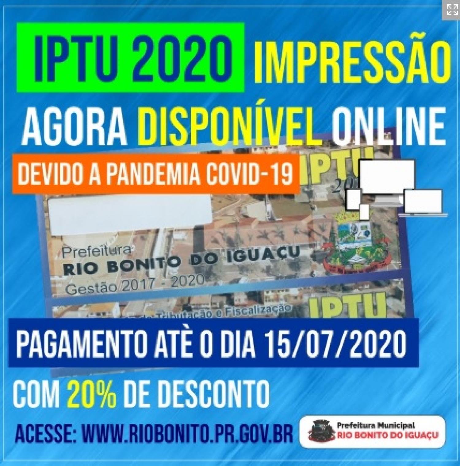 O Departamento de Tributação de Rio Bonito do Iguaçu informa sobre o IPTU 2020, com vencimento até o dia 15 de julho. Realizando o pagamento à vista, o contribuinte terá 20% de desconto.