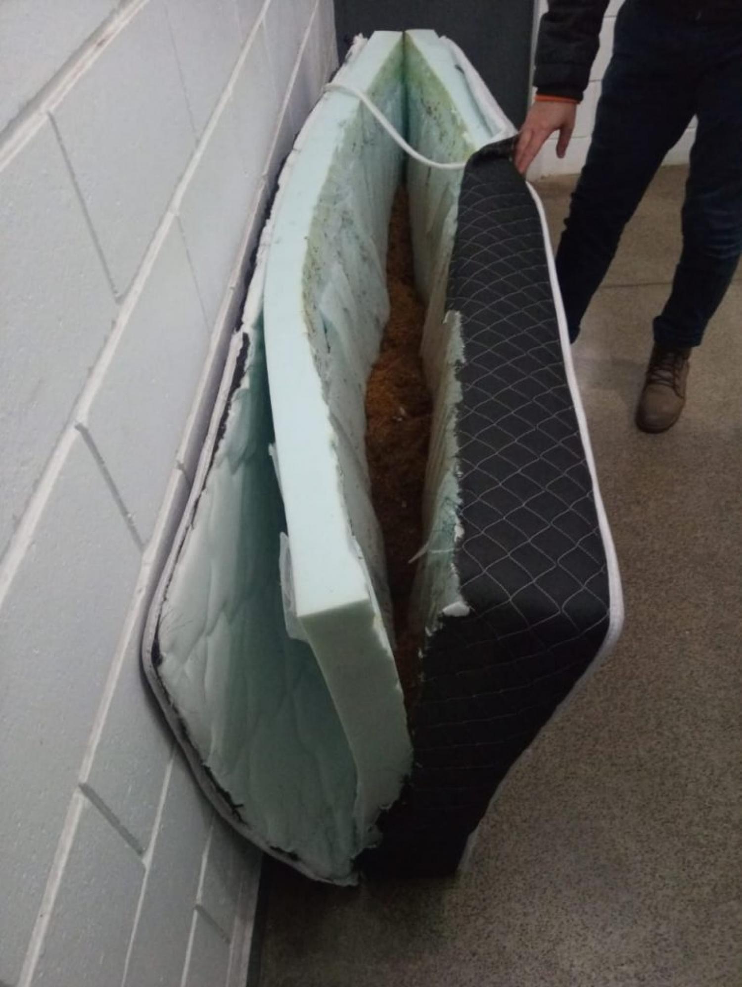 Um colchão recheado de fumo, que seria repassado a um preso da Penitenciária Estadual de Francisco Beltrão (PEFB), foi apreendido, na tarde desta segunda-feira (29), por agentes do Departamento Penitenciário do Paraná. O material ilícito foi encontrado após o item passar pelo equipamento de raio X da unidade. O item havia sido entregue por um familiar do detento.