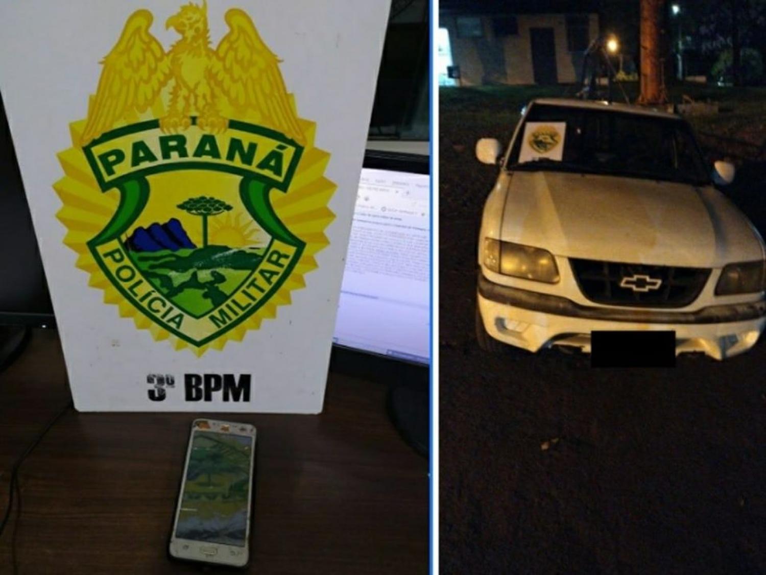 Enquanto a equipe policial realizava o registro da ocorrência no local do fato, o Copom repassou a informação que o veículo utilizado no roubo havia sido furtado há poucos minutos na Rua Itacolomi Bairro Amadori, de posse das informações realizaram patrulhamento e na estrada que liga o Bairro São João ao Bairro Aeroporto a PM visualizou a S10, realizaram acompanhamento tático, e na sequência abordaram o veículo.