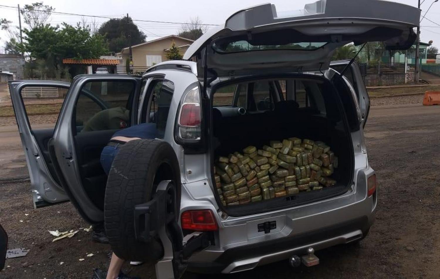 A droga estava escondida no fundo falso debaixo dos bancos e foi encontrada pelos cães farejadores. O condutor do veículo, um homem de 35 anos foi preso em flagrante. A droga segundo condutor foi carregada na região de Foz do Iguaçu e seria entregue em SC na cidade de Chapecó.