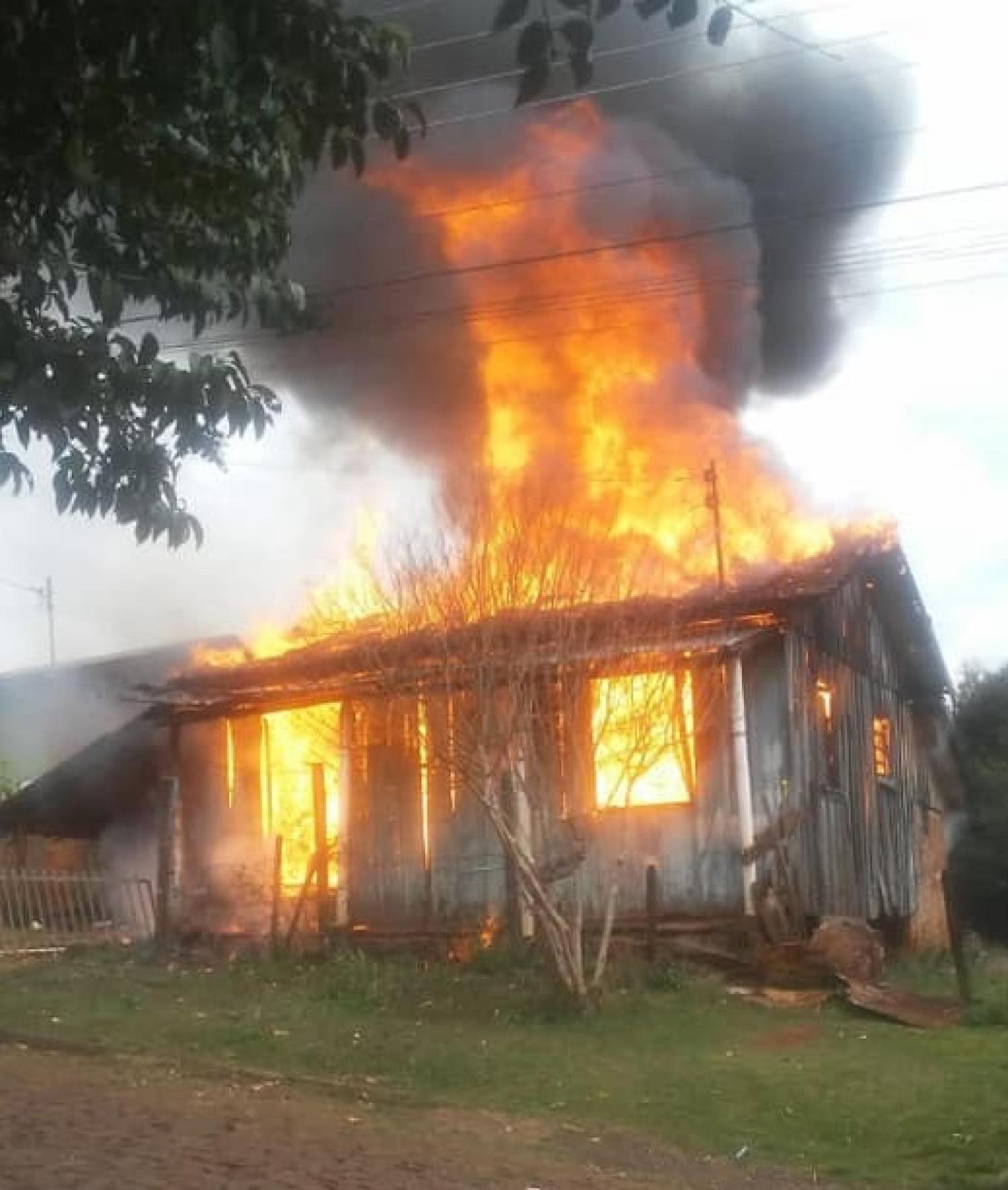 Um incêndio destruiu completamente uma casa de madeira no início da tarde desta segunda-feira (27), na Rua Otílio Weiss, em Coronel Vivida.