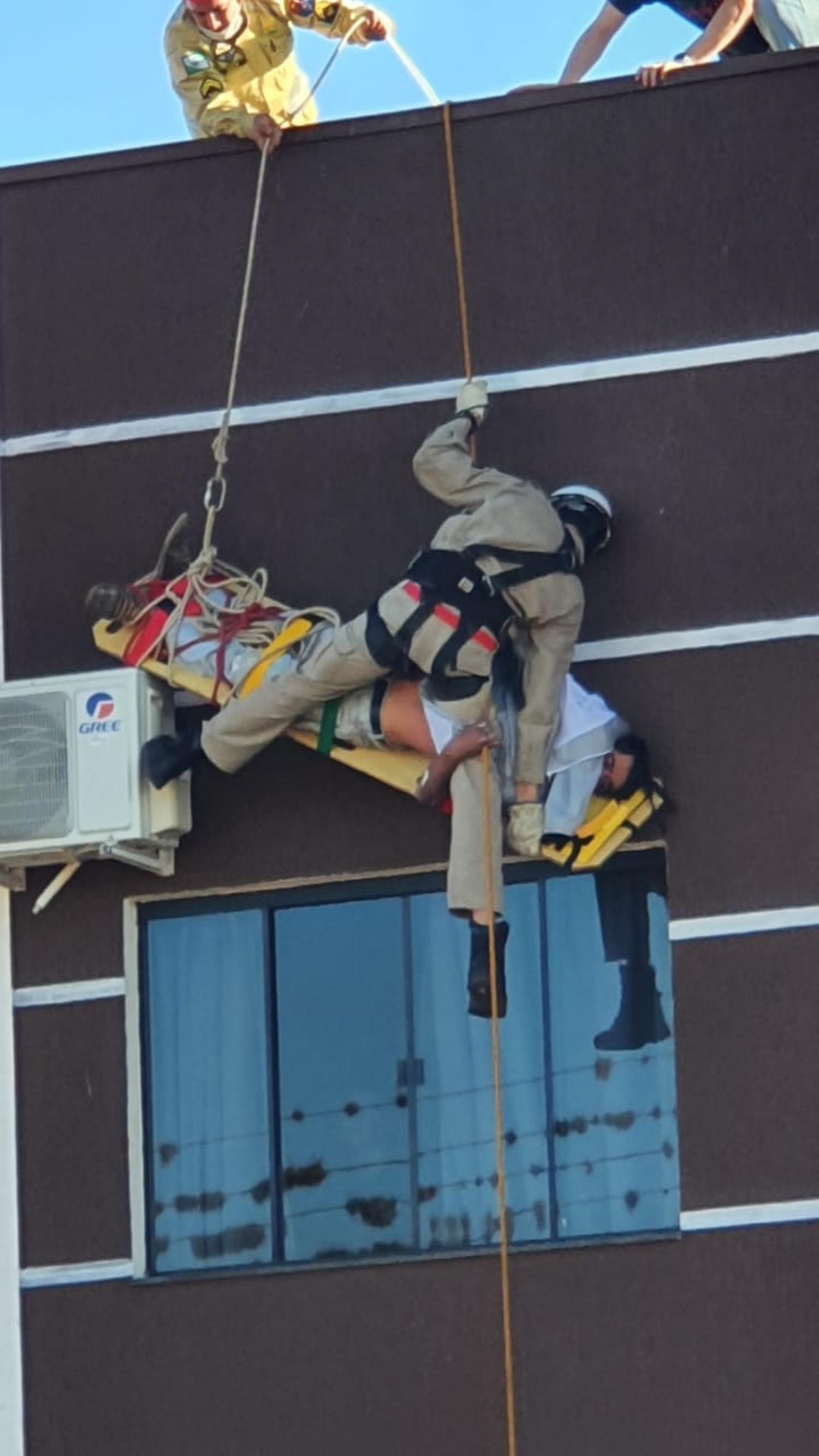 De acordo com informações, ele sofreu uma descarga elétrica e caiu em cima da cobertura do prédio em que estava pintando. O Corpo de Bombeiros informou que o estado de saúde dele requer cuidados.
