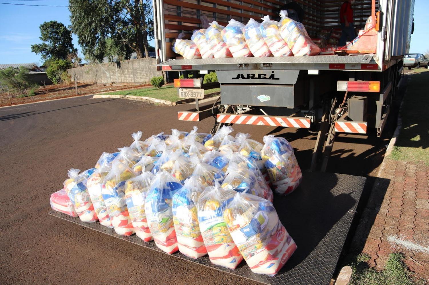 O transporte dos produtos até o município foi realizado pela Defesa Civil do Estado do Paraná e segundo a Secretaria de Assistência Social serão distribuídas duas cestas por família.