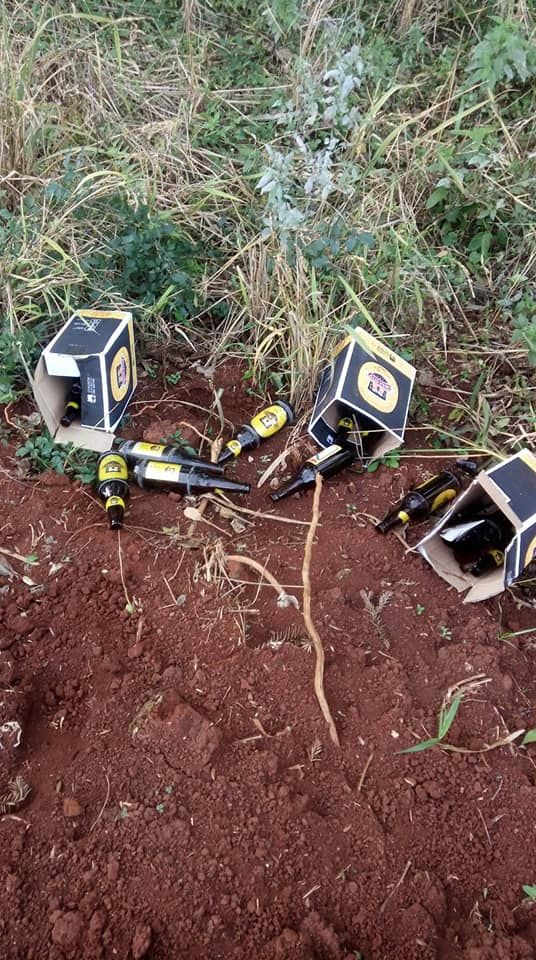 Um morador da Linha Padre, saída para a BR 373, em Coronel Vivida, onde recentemente foi feito asfalto novo, está indignado com vasilhame jogado em sua lavoura.