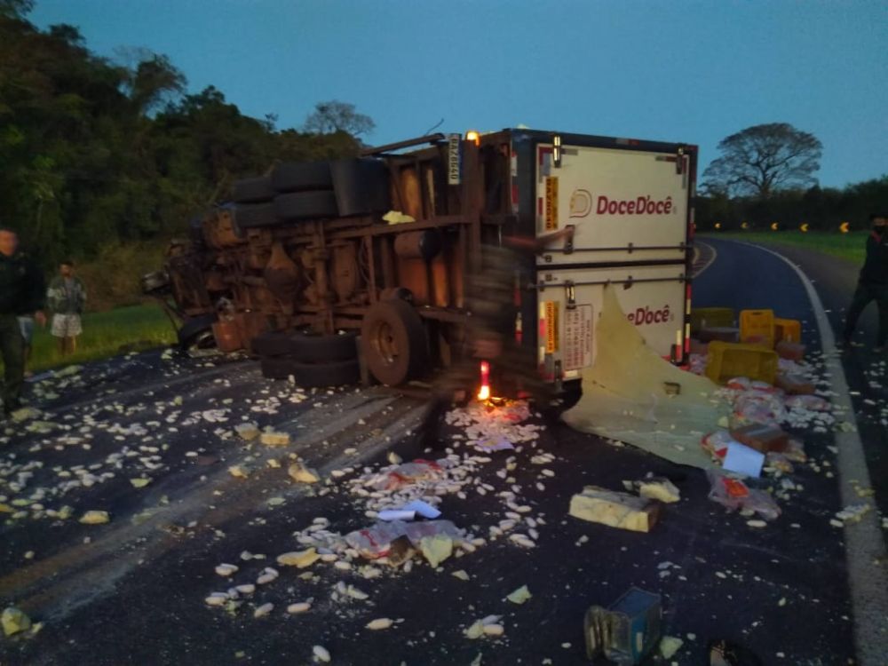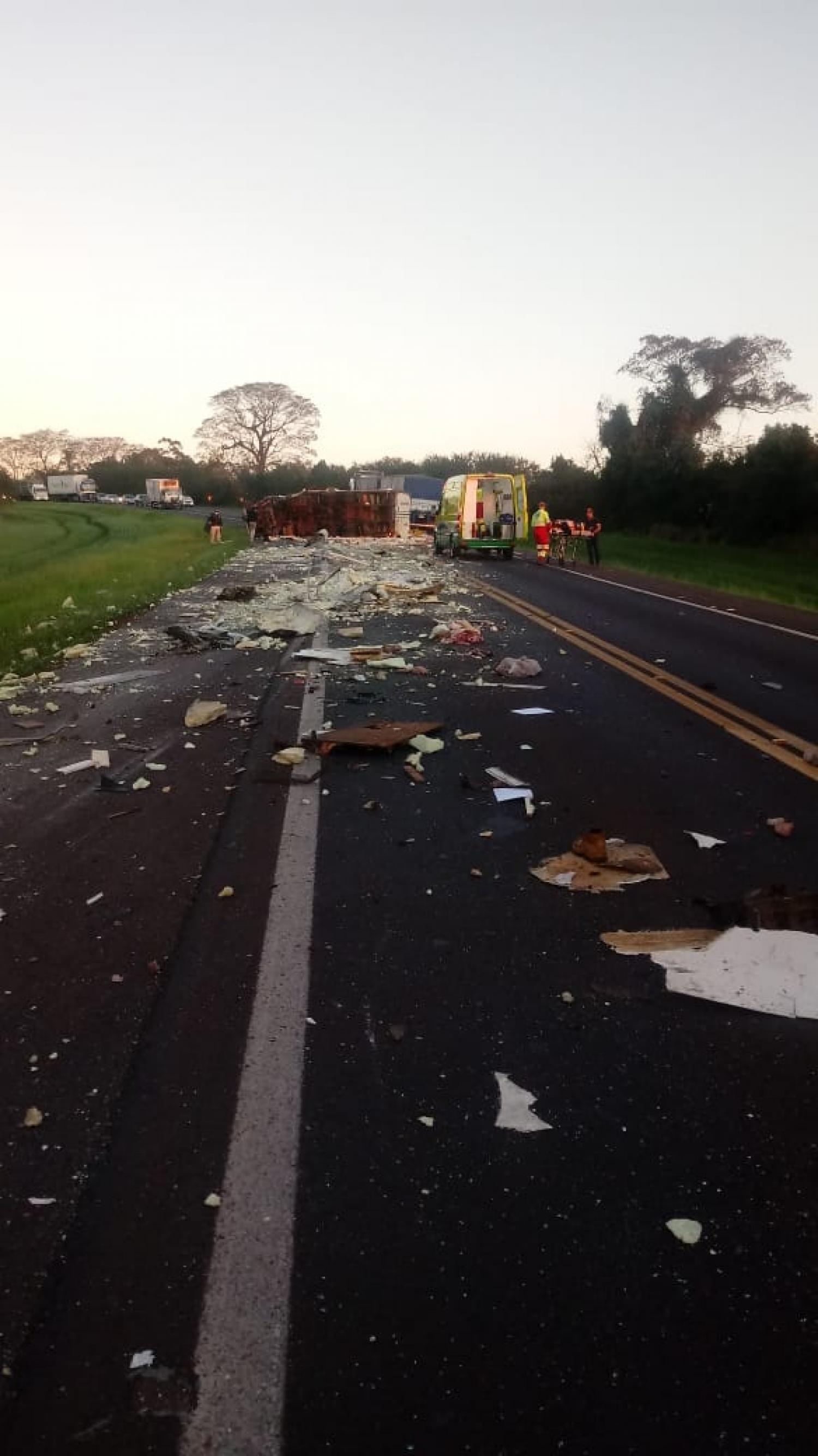 Ecocataratas e Samu atenderam a ocorrência. No km 629, o tráfego nos dois sentidos da pista continua lento. Os caminhões permanecem na pista.