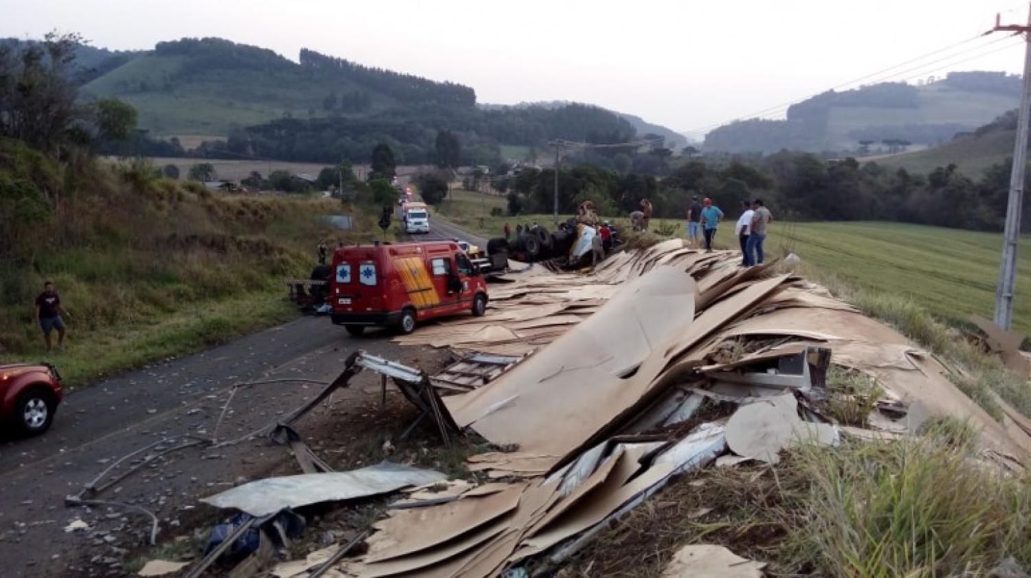 Segundo relatos de um motorista que vinha logo atrás da carreta, em um determinado trecho da rodovia a Scania acabou ganhando velocidade, já na última curva da serra, o motorista subiu com a carreta no barranco, vindo a tombar. O veículo atravessou a rodovia, interditando a passagem nos dois sentidos da PR-562. A carga de placas de MDF ficou espalhada sob a rodovia e suas margens.