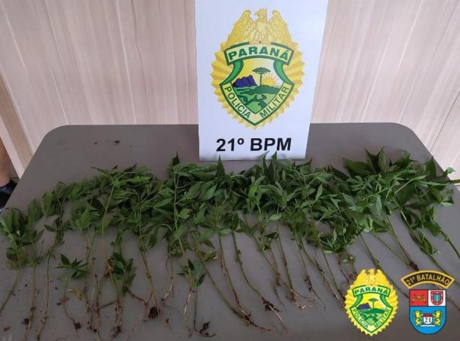 Posteriormente por volta de 13h25 dando continuidade nas buscas foi localizada uma plantação com 39 pés de maconha. Nenhum suspeito foi localizado.