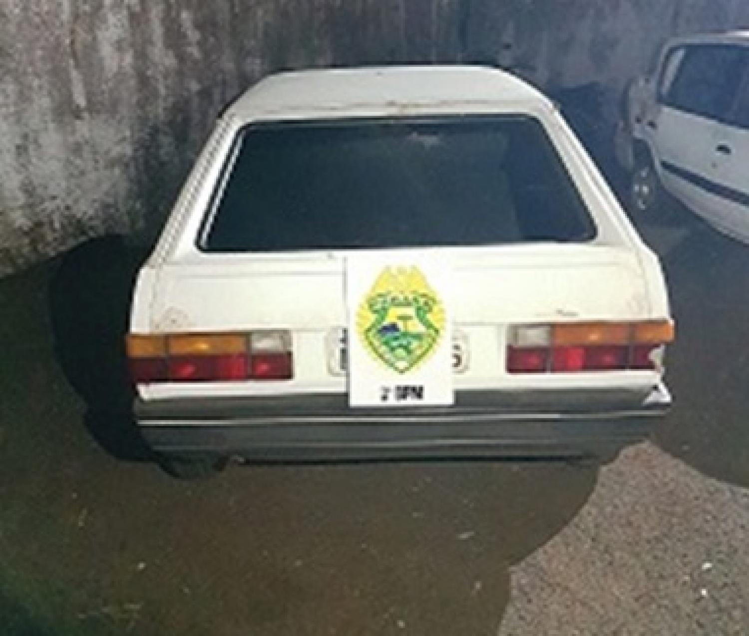 Ao tentar a abordagem os quatro ocupantes iniciaram uma fuga e o condutor acabou batendo o veículo contra o alambrado do campo de futebol do bairro Alvorada.