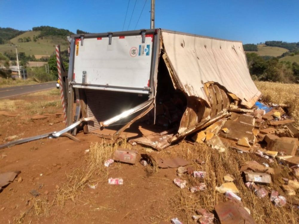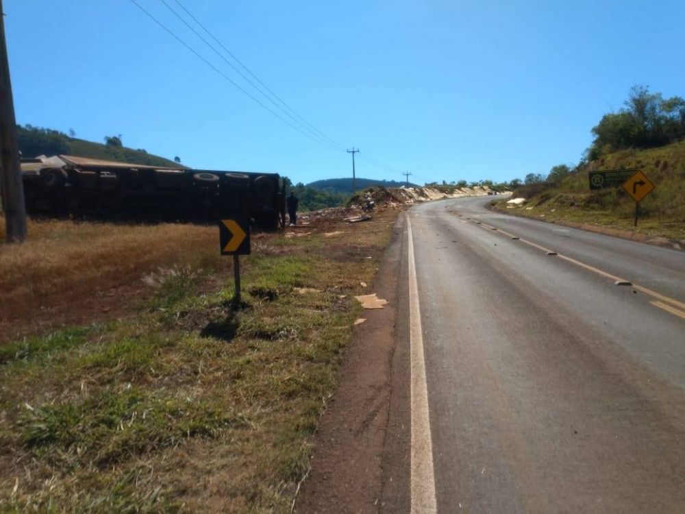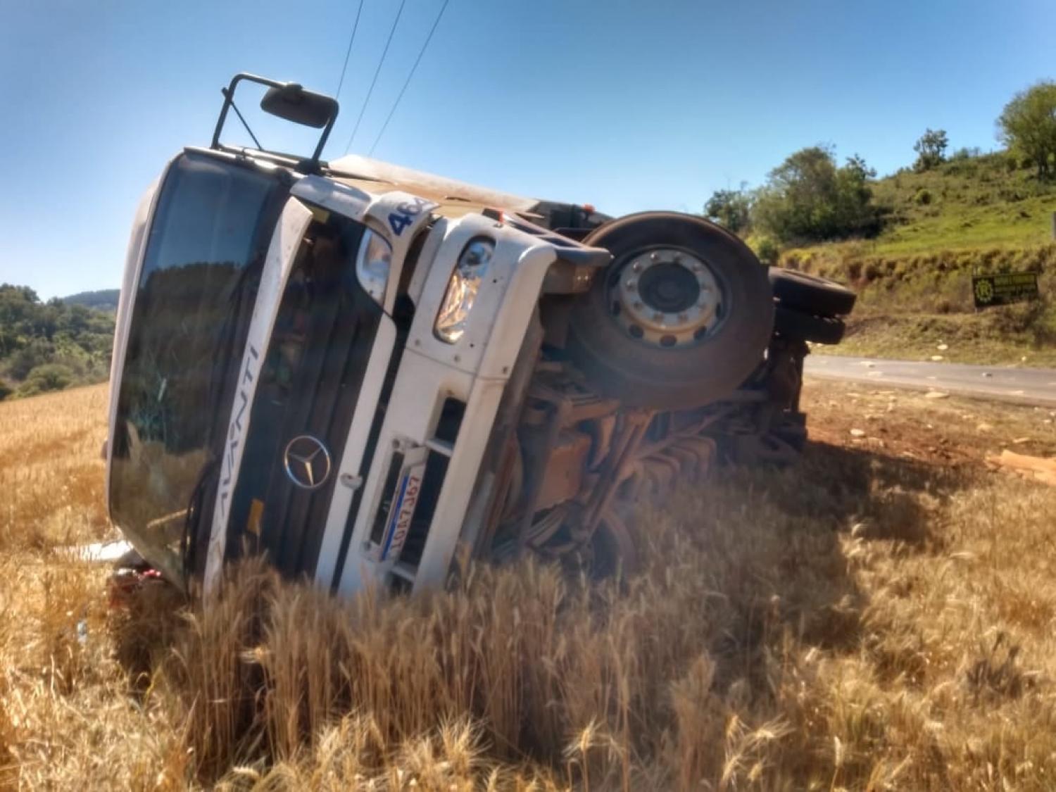 O acidente envolveu um caminhão carregado com frios, produtos da marca Batavo, sendo que o condutor, Valdecir da Cruz 48 anos, seguia para Francisco Beltrão, quando perdeu o controle do caminhão no final da serra, saiu da pista e tombou em meio à lavoura de trigo.