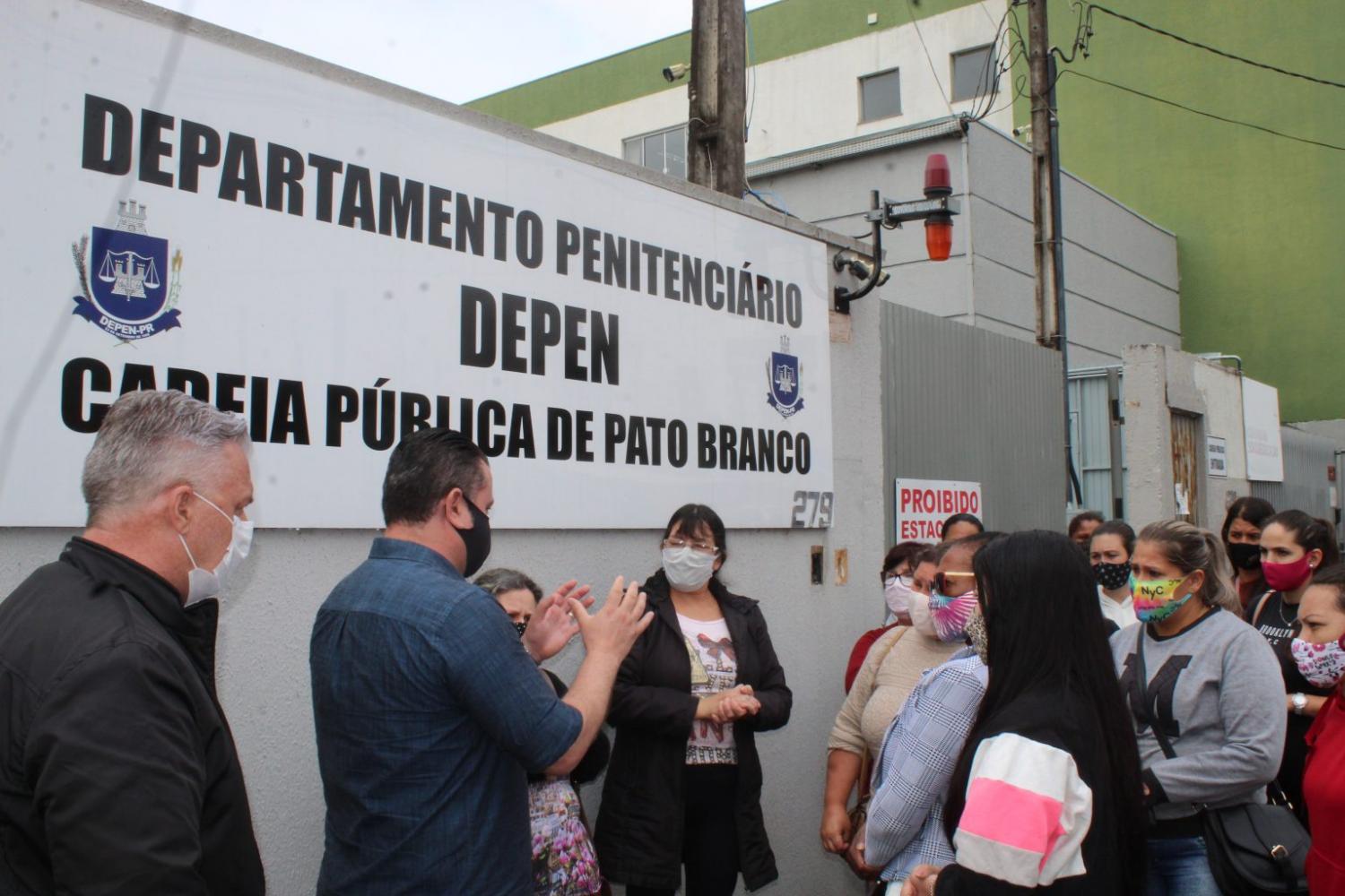 O diretor regional do Departamento Penitenciário (Depen), Marcos Andrade, e o coordenador regional da Casa Civil do Governo do Estado, José Ronaldo da Silva, receberam na manhã desta segunda-feira (28), uma comissão de familiares dos 41 presos da cadeia pública de Pato Branco, que testaram positivo para covid-19. Os detentos fizeram as reivindicações através das redes sociais com um celular, que tinham no interior do cadeião e foi entregue as autoridades.