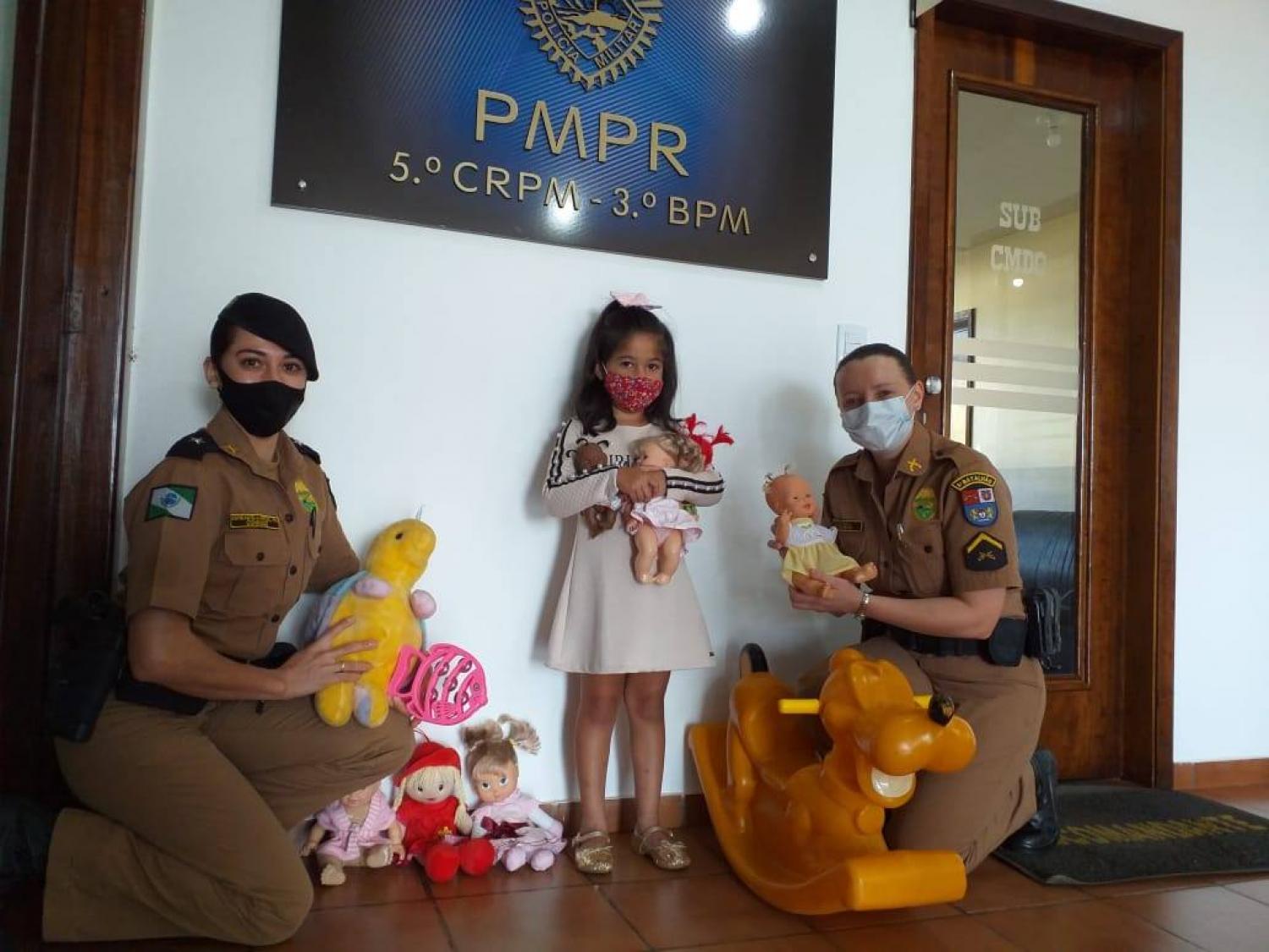 Faça como a Yasmin de Freitas Santos, de 5 anos, que levou seus brinquedos para doação da Campanha Paraná Piá na manhã desta terça-feira (29) até a sede do 3° Batalhão, em Pato Branco.