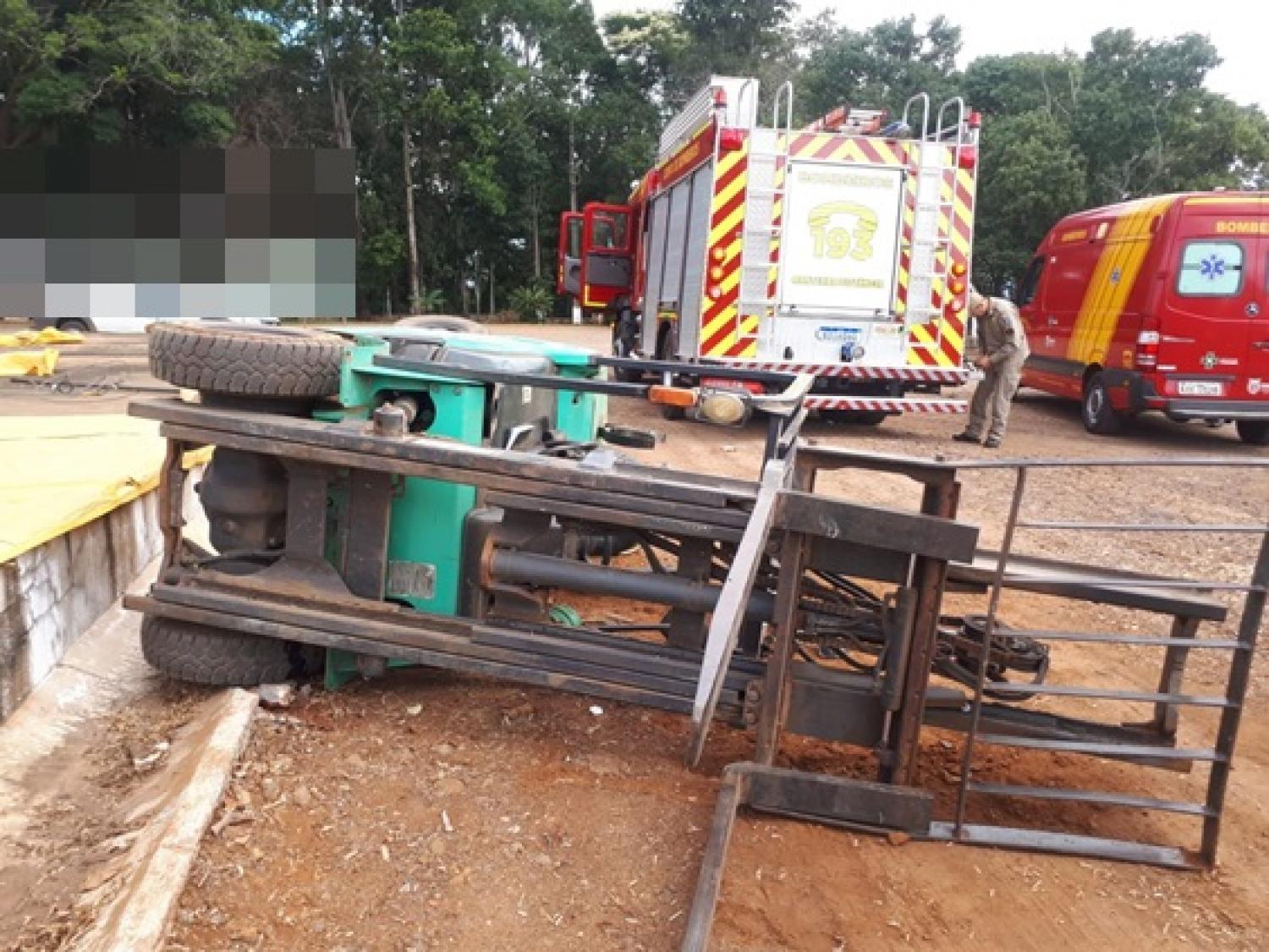 De acordo com as informações, um trabalhador, de 19 anos, ficou ferido após uma empilhadeira tombar. Segundo o Corpo de Bombeiros, o rapaz ficou preso embaixo da máquina e foi necessário o uso do desencarcerador para realizar o socorro.