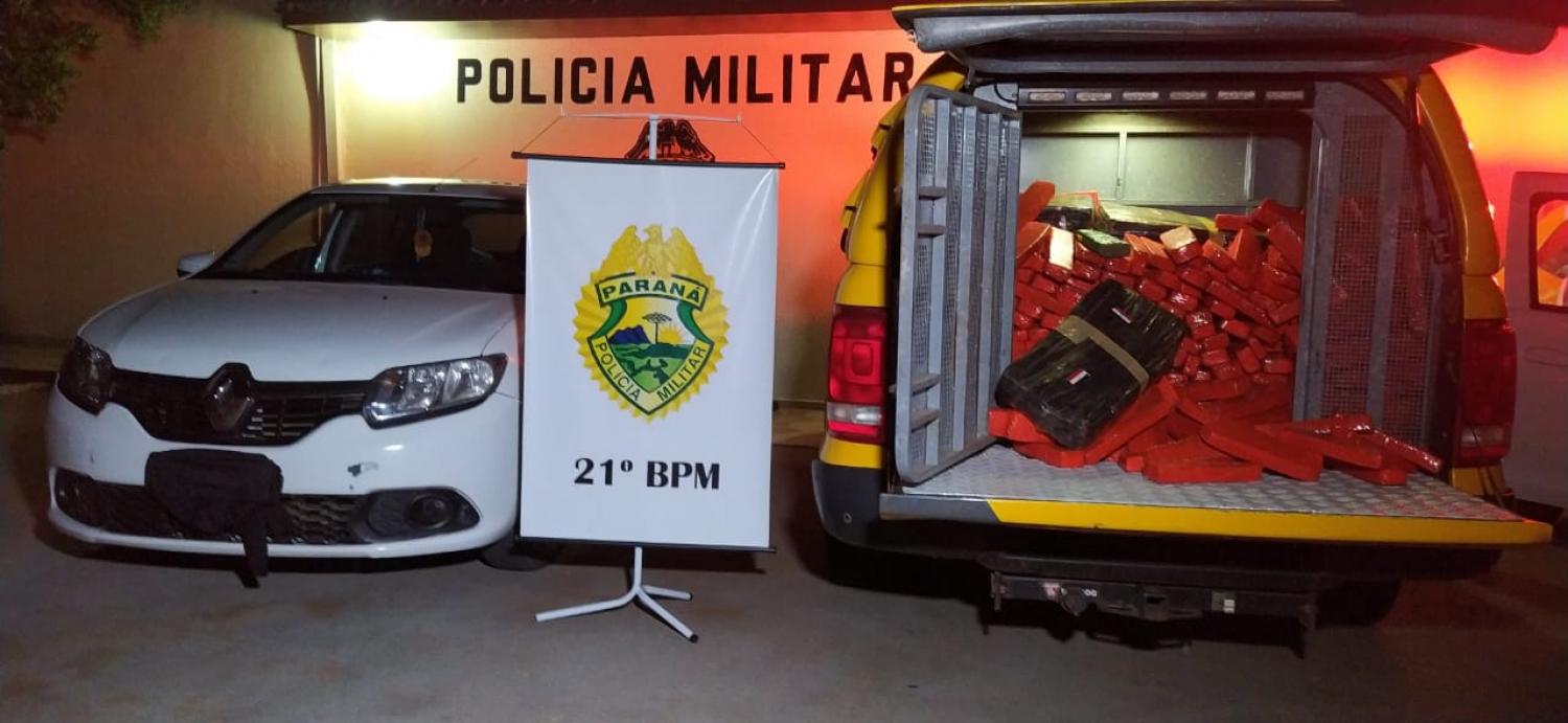 Outros dois homens que estavam em veículo Renault/Sandero e faziam o serviço de batedor, acabaram perdendo o controle do veículo, tentaram fugir, mas um homem de 23 anos, morador em Caxias do Sul (RS) acabou preso. O veículo era roubado. No total foram apreendidos 620 kg de maconha, três traficantes presos e veículos recuperados.
