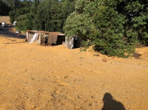 Em conversas com populares que estavam no local no momento do acidente, eles contaram que a carreta acabou não conseguindo completar a curva e acabou tombando, atingindo o barranco que estava um pouco mais a frente, e também, o guard-rail. A carga de milho, à granel, ficou espalhada pela lateral da pista e em uma lavoura que fica ao lado.