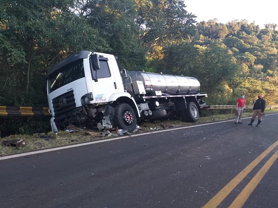 O acidente tipo colisão frontal aconteceu na Curva do Paredão por volta das 06 horas da manhã desta sexta-feira, dia 02. Se envolveram na colisão, um veículo Palio e caminhão de transporte de leite.