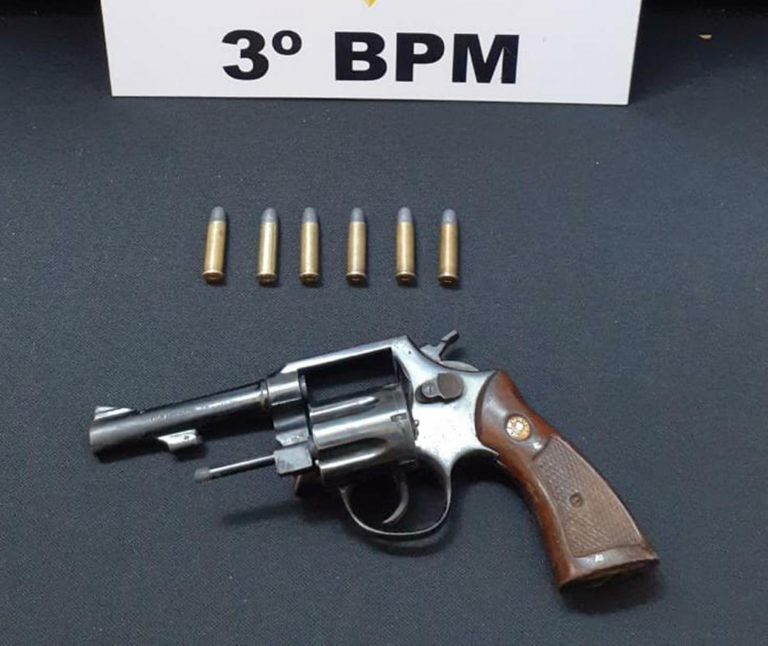 No caminho, ao se aproximar da propriedade do acusado, os policiais avistaram um homem com uma arma de fogo na mão, o qual correu e arremessou a arma em um local de mata, sendo possível realizar a abordagem do mesmo, onde em revista pessoal foi encontrado em seu bolso da calça do lado direito uma munição, intacta, calibre .38, e na sequencia após buscas no terreno foi localizada, em meio ao potreiro uma arma de fogo, tipo revólver calibre .38, com 05 munições intactas, estando a arma em um coldre de cor preta.