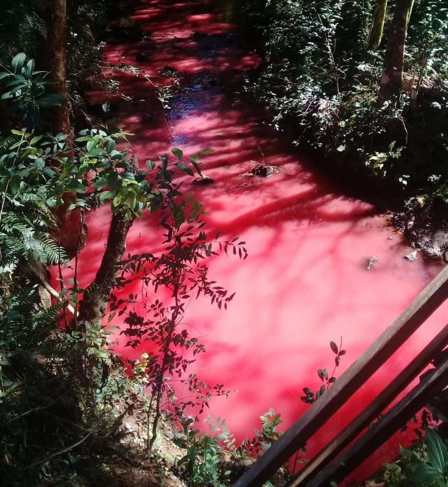 Segundo o engenheiro, um galão de tinta caiu na água e provocou essa coloração avermelhada.