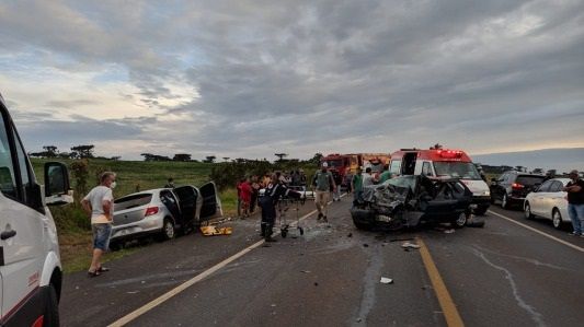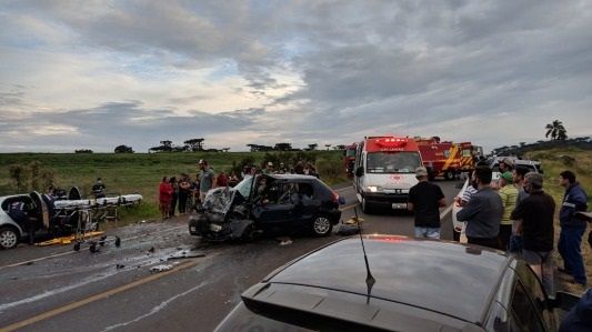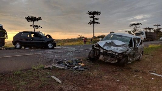 A colisão frontal envolveu um Fiat Palio com placas da cidade de Ponta Grossa e um Gol com placas de São Lourenço do Oeste-SC.