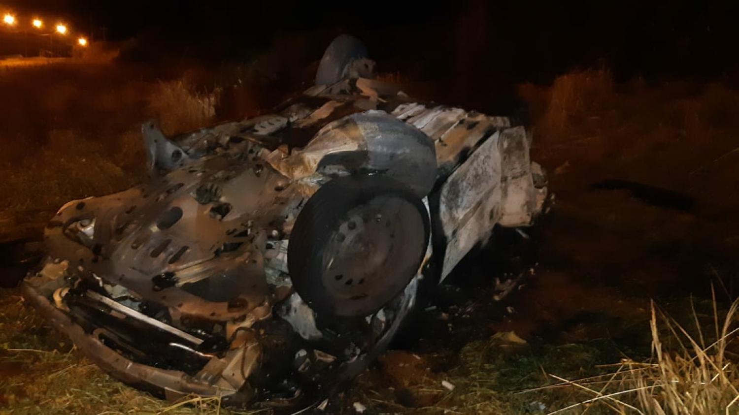 O Carro acabou incendiando após o acidente.